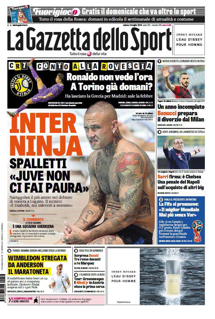 Gazzetta, Corriere dello Sport, Tuttosport: prime pagine 14 luglio 2018 14/07/2018 - 07:50 di Matteo B.