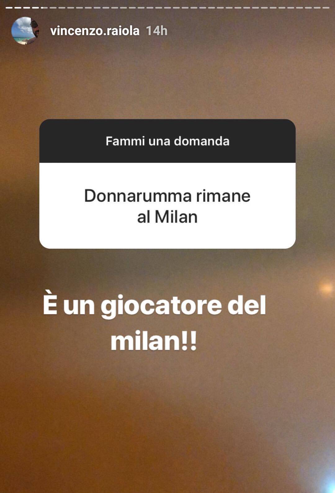 Nel frattempo le tensioni fra il club e Raiola non si sono mai allentate. Con Mino così come Vincenzo, cugino del famoso agente e molto amico di Donnarumma, il quale, tramite le Stories di Instagram, ha lanciato alcune frecciatine al Milan. Alla domanda sulla nuova proprietà del Milan, ha risposto: “Quale?“. Sulla permanenza del portiere in rossonero, poi: “È un giocatore del Milan!“, come a dire che in realtà le porte per una cessione futura sono aperte.