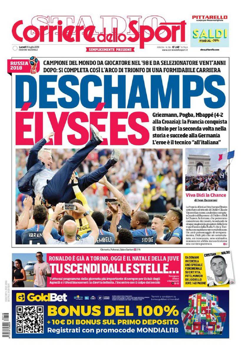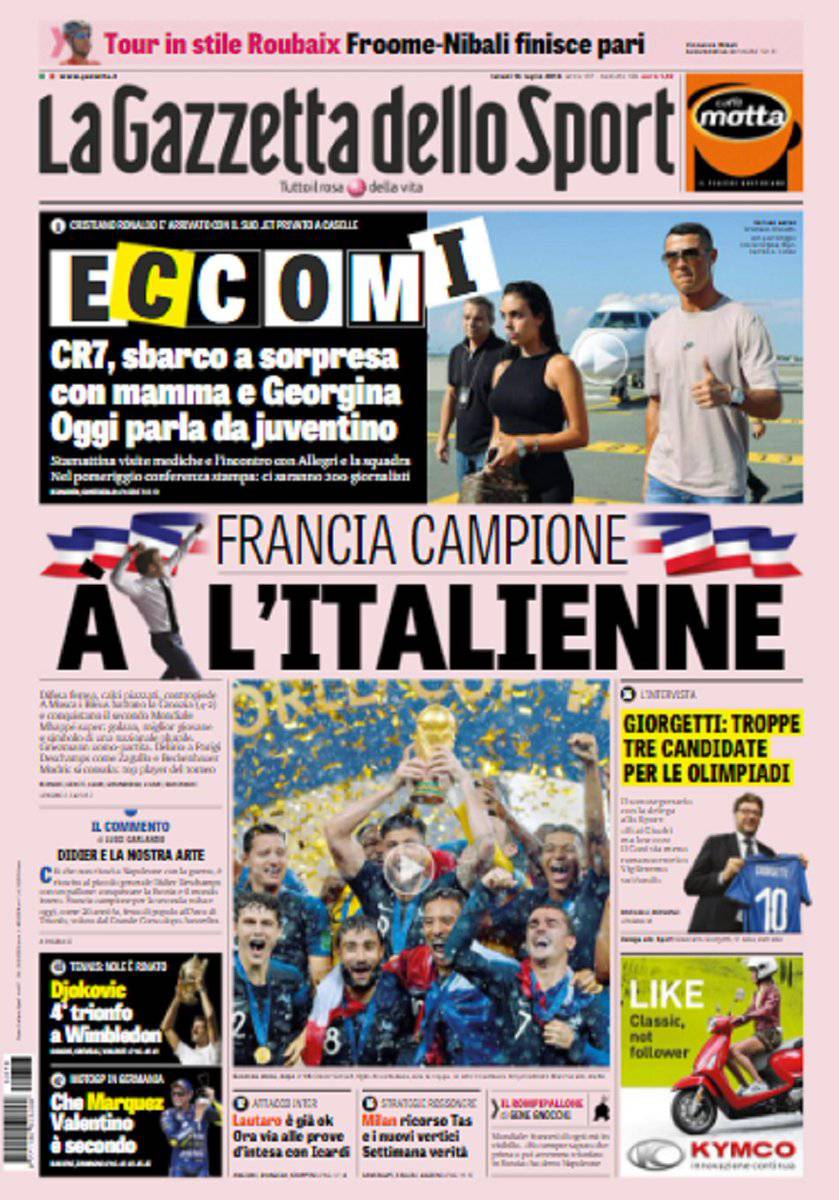 Gazzetta dello Sport, CorSport e Tuttosport: prime pagine del 16 luglio 2018 16/07/2018 - 15:5716/07/2018 - 08:00 di Keivan Karimi