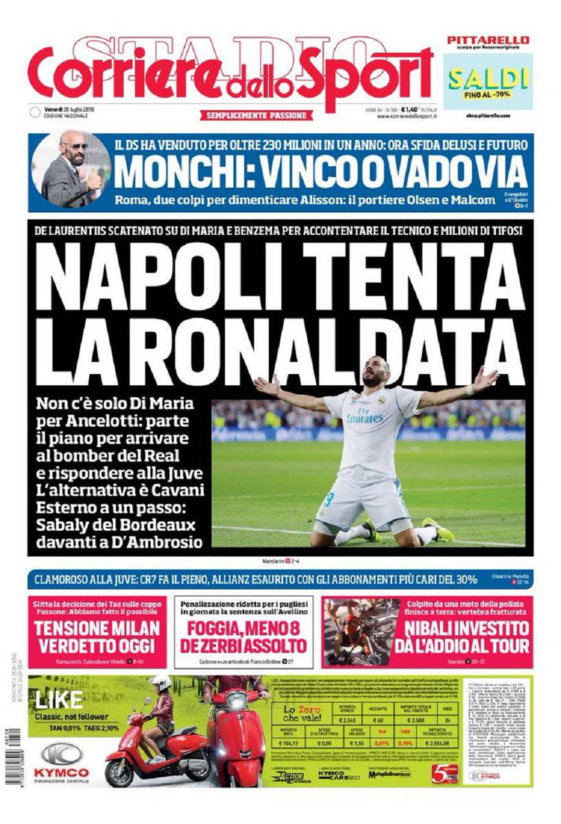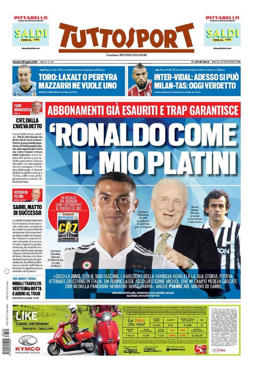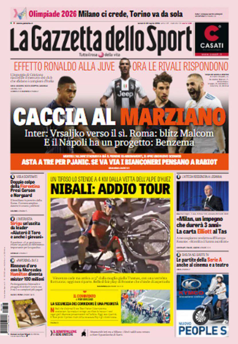 Gazzetta dello Sport, CorSport, Tuttosport: prime pagine del 20 luglio 2018 20/07/2018 - 07:58 di Keivan Karimi