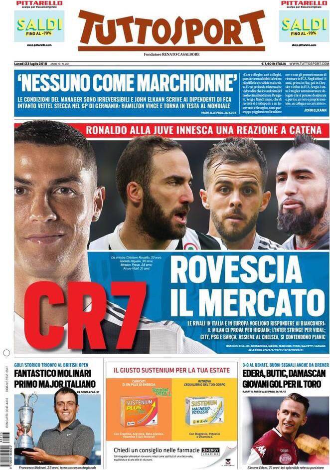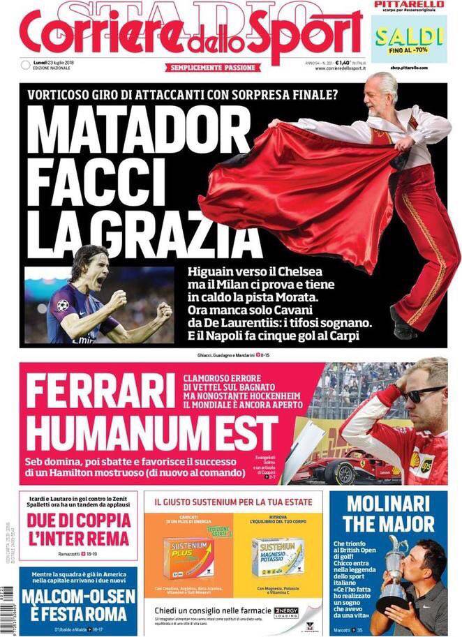 Gazzetta, Corriere dello Sport, Tuttosport: prime pagine 23 luglio 2018 23/07/2018 - 08:11 di Matteo B.