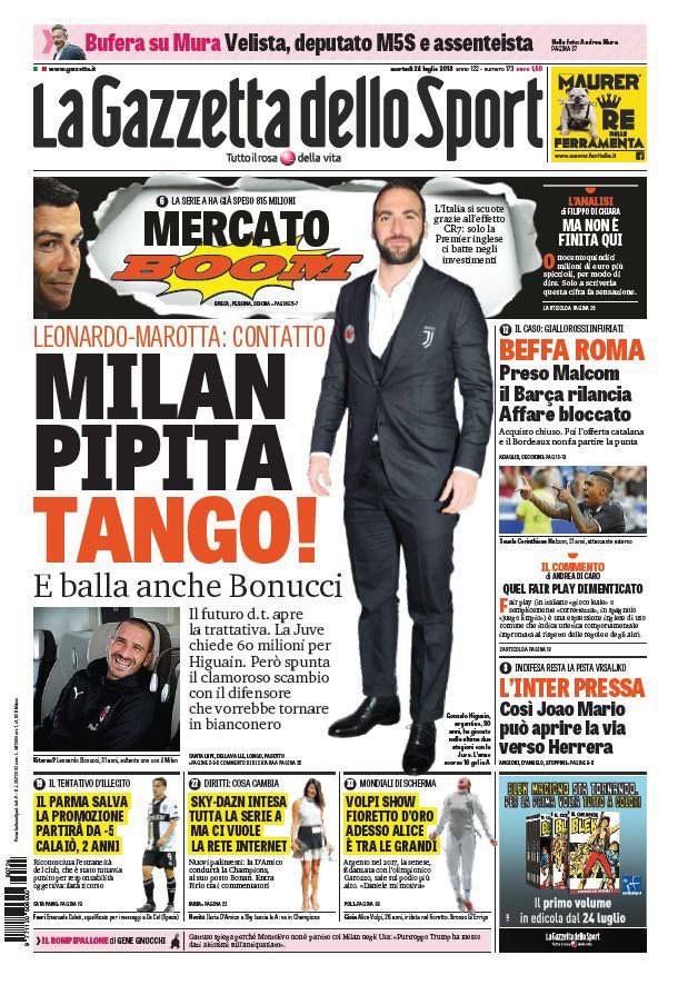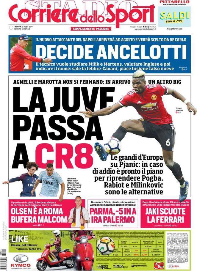 Gazzetta dello Sport, CorSport, Tuttosport: prime pagine del 24 luglio 2018 24/07/2018 - 08:01 di Keivan Karimi