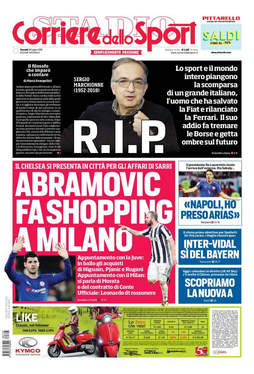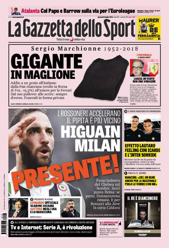 Gazzetta, Corriere dello Sport, Tuttosport: prime pagine 26 luglio 2018 26/07/2018 - 07:42 di Matteo B.