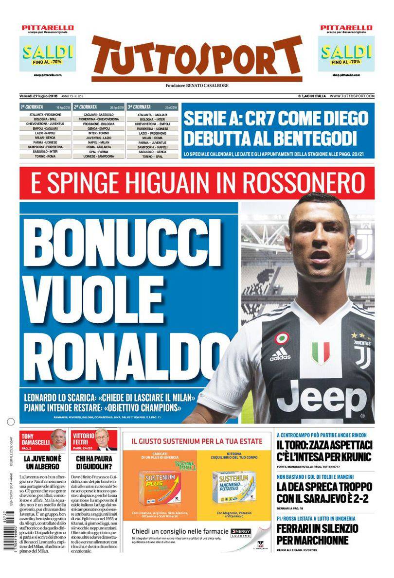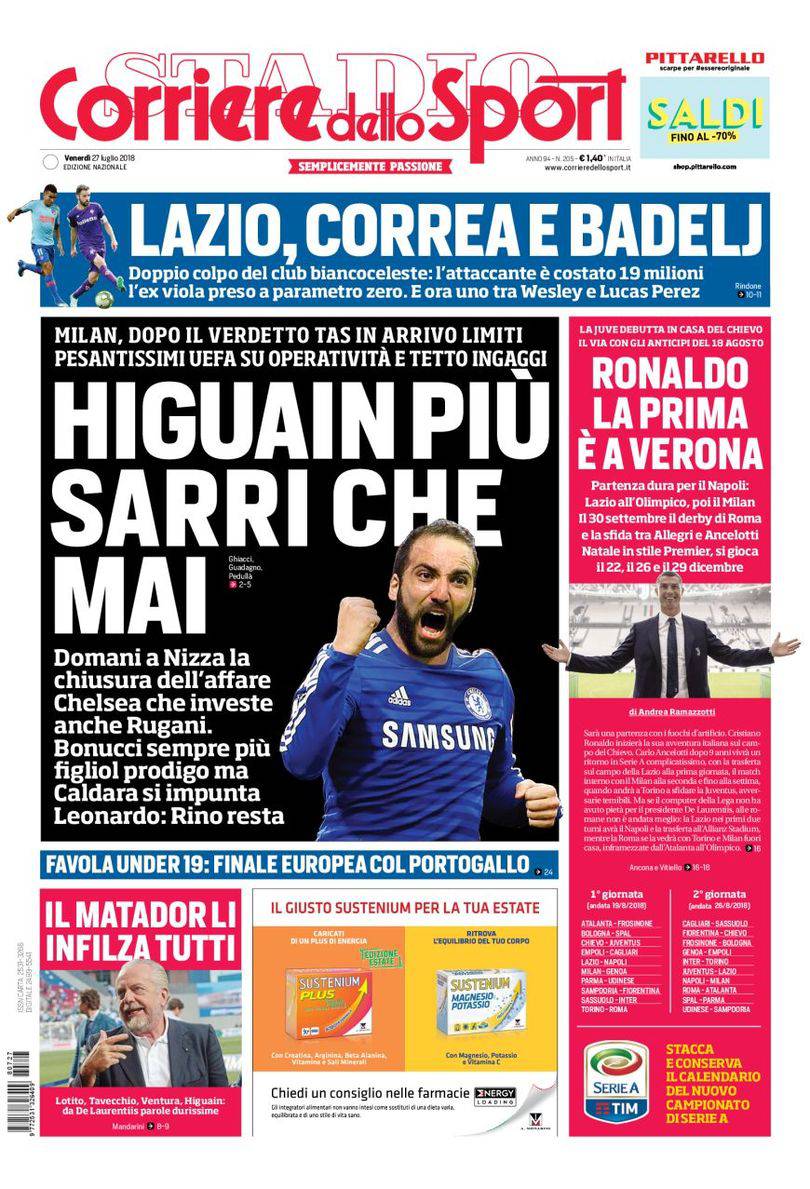 Gazzetta dello Sport, CorSport, Tuttosport: prime pagine del 27 luglio 2018 27/07/2018 - 08:09 di Keivan Karimi