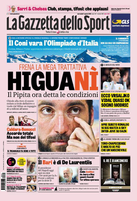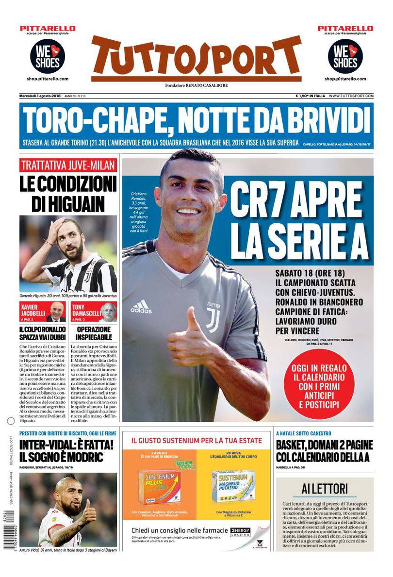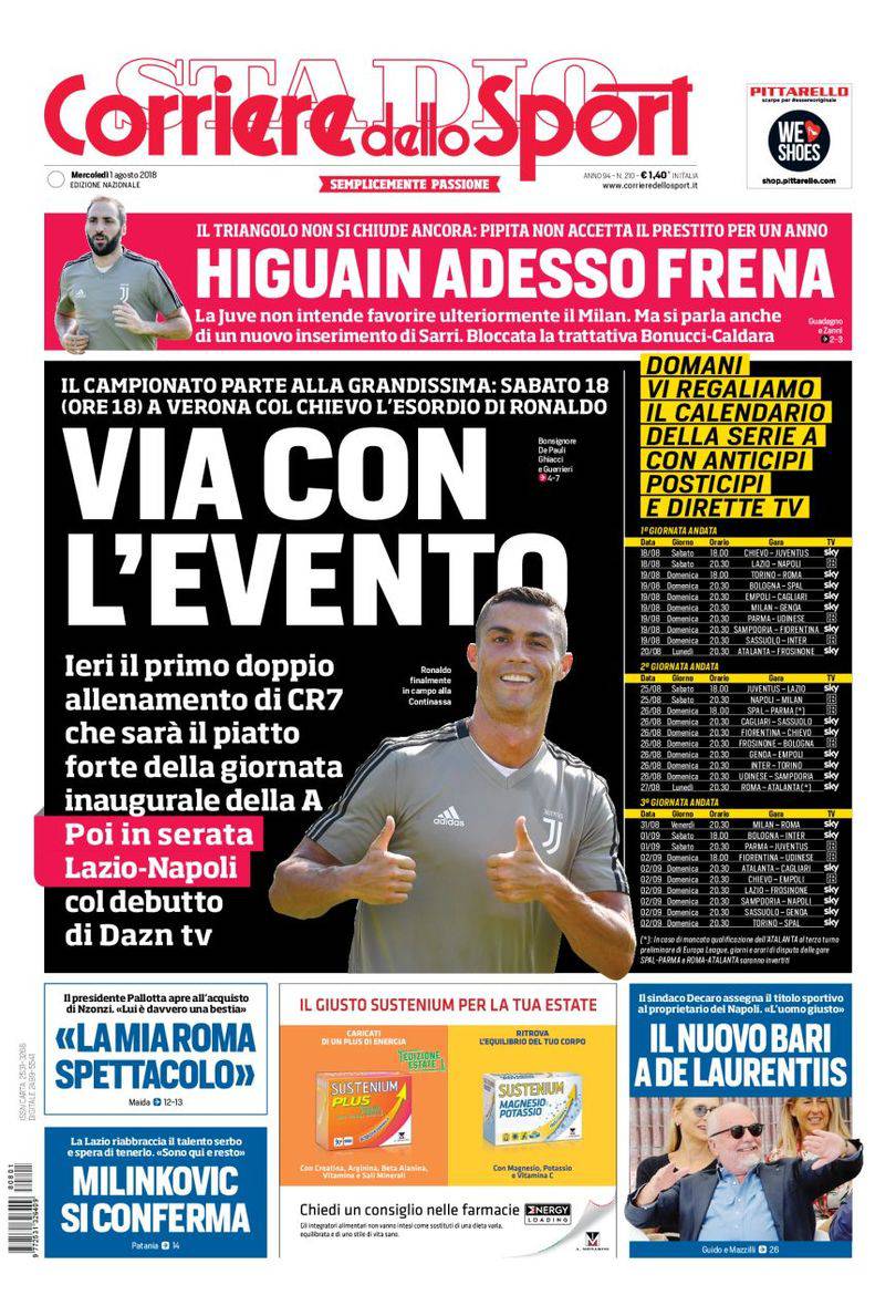 Gazzetta, Corriere dello Sport, Tuttosport: prime pagine 1° agosto 2018 03/08/2018 - 23:2901/08/2018 - 07:36 di Keivan Karimi