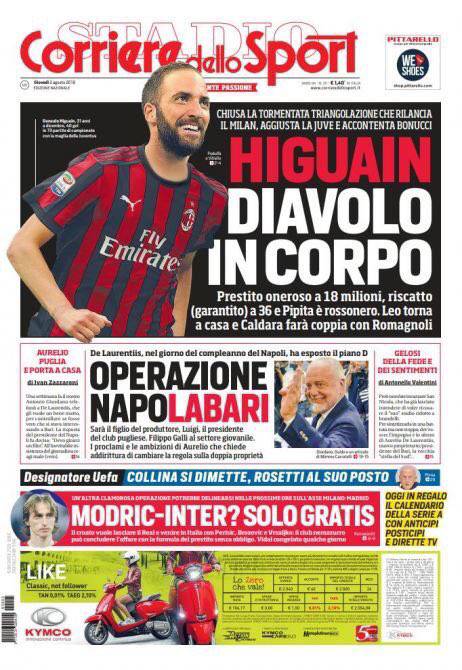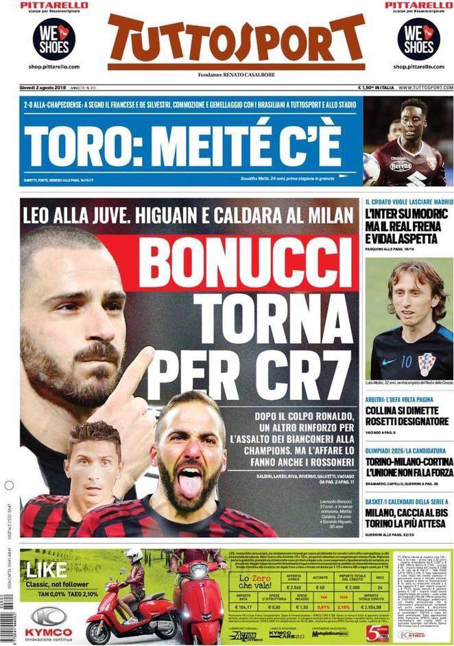 Gazzetta, Corriere dello Sport, Tuttosport: prime pagine 2 agosto 2018 02/08/2018 - 07:44 di Matteo B.