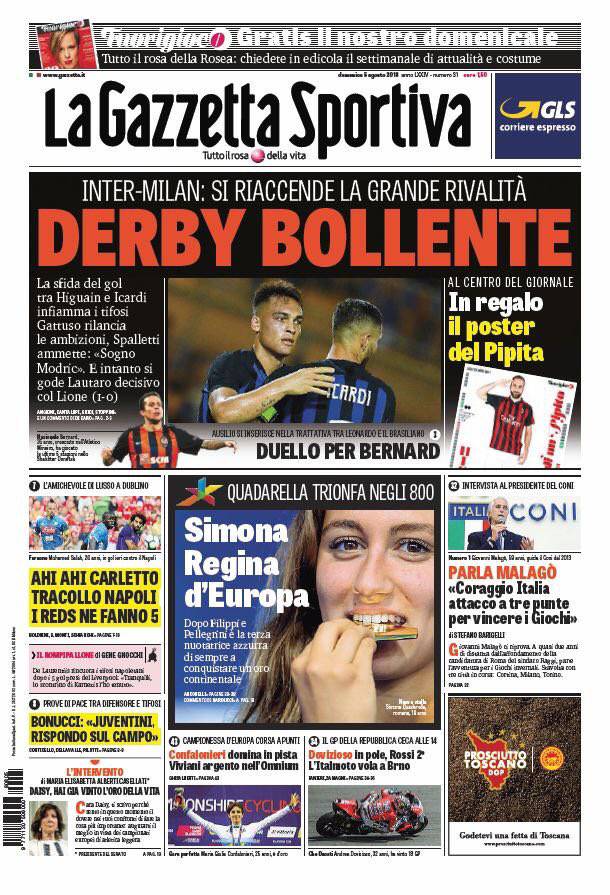 Gazzetta, Corriere dello Sport, Tuttosport: prime pagine 5 agosto 2018 05/08/2018 - 08:31 di Matteo B.