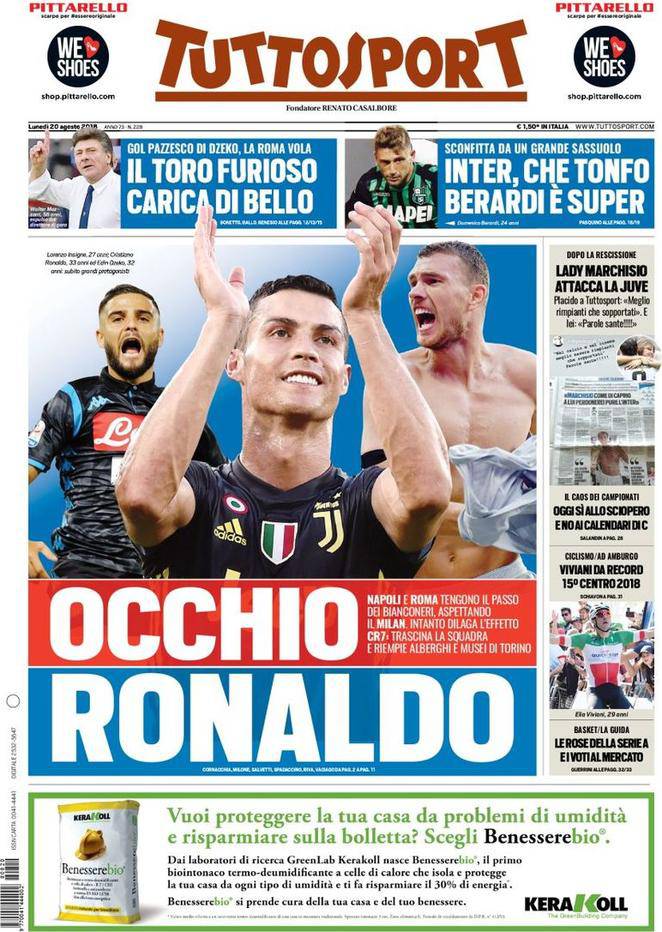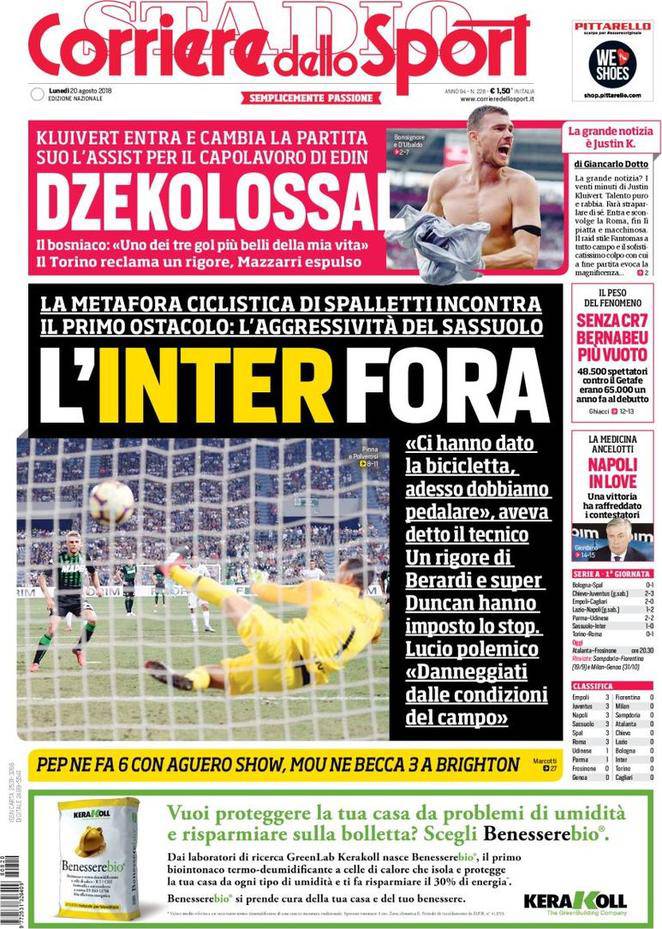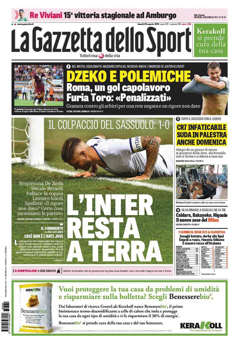 Gazzetta dello Sport, CorSport, Tuttosport: prime pagine del 20 agosto 2018 20/08/2018 - 08:11 di Keivan Karimi