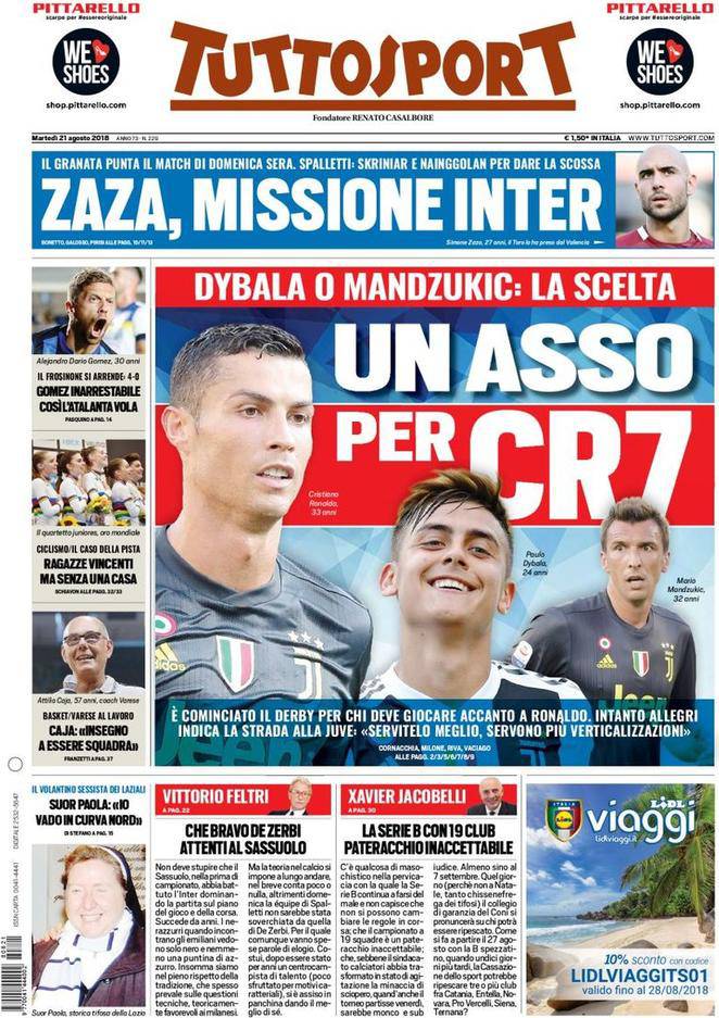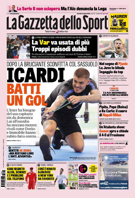 Gazzetta dello Sport, CorSport, Tuttosport: prime pagine del 21 agosto 2018 21/08/2018 - 08:14 di Keivan Karimi