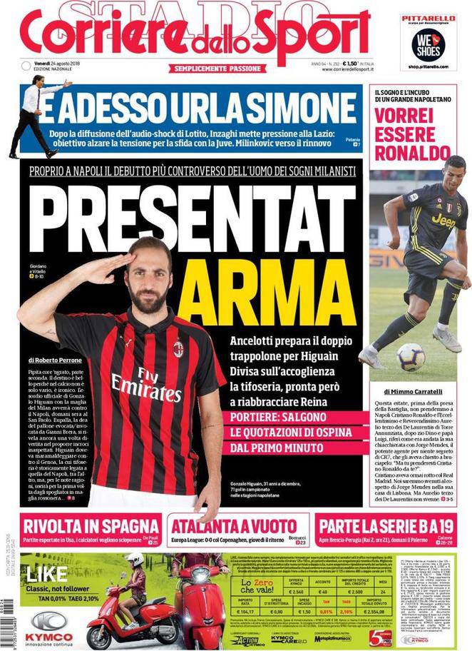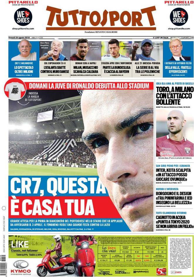 Gazzetta, Corriere dello Sport, Tuttosport: prime pagine 24 agosto 2018 24/08/2018 - 10:0924/08/2018 - 07:37 di Keivan Karimi
