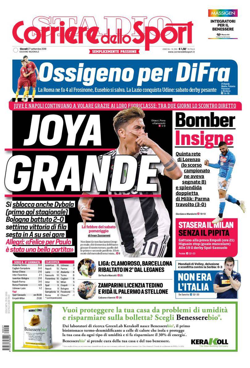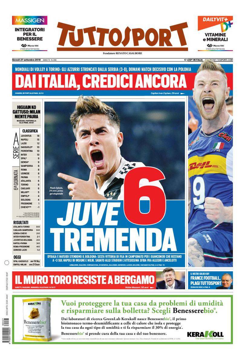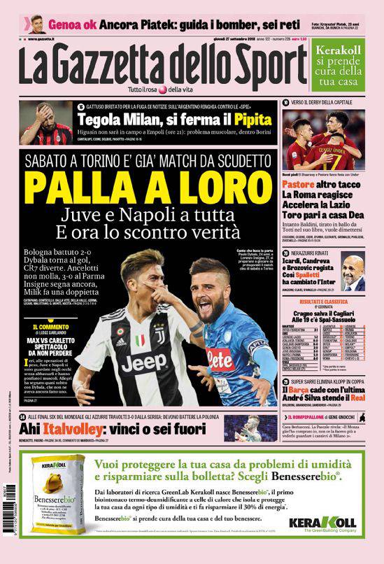 Gazzetta dello Sport, CorSport, Tuttosport: prime pagine del 27 settembre 2018 02/12/2025 - 17:1227/09/2018 - 08:16 di Pasquale La Ragione