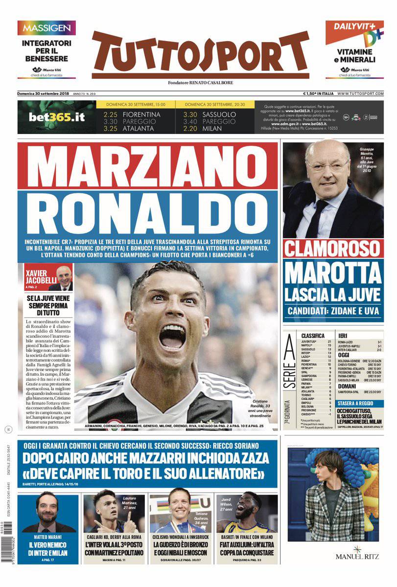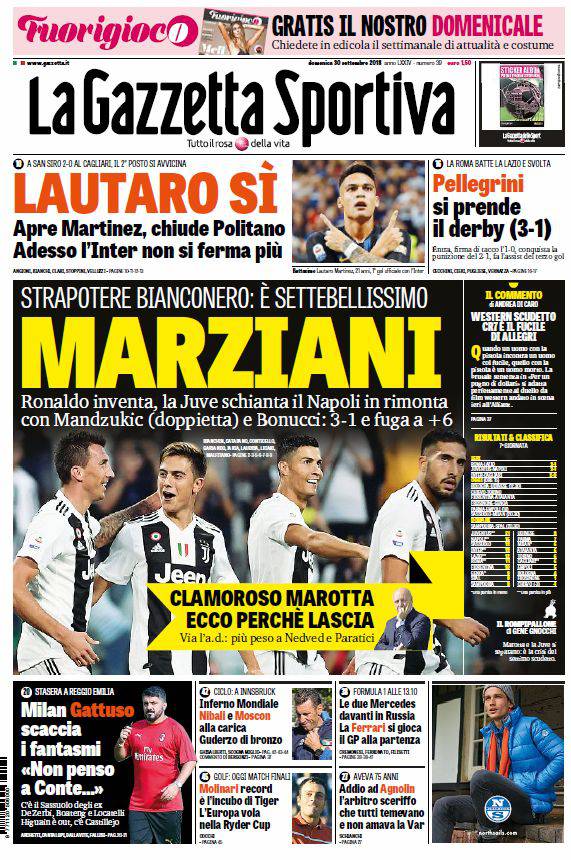 Gazzetta dello Sport, CorSport e Tuttosport: prime pagine del 30 settembre 2018 30/09/2018 - 08:30 di Keivan Karimi
