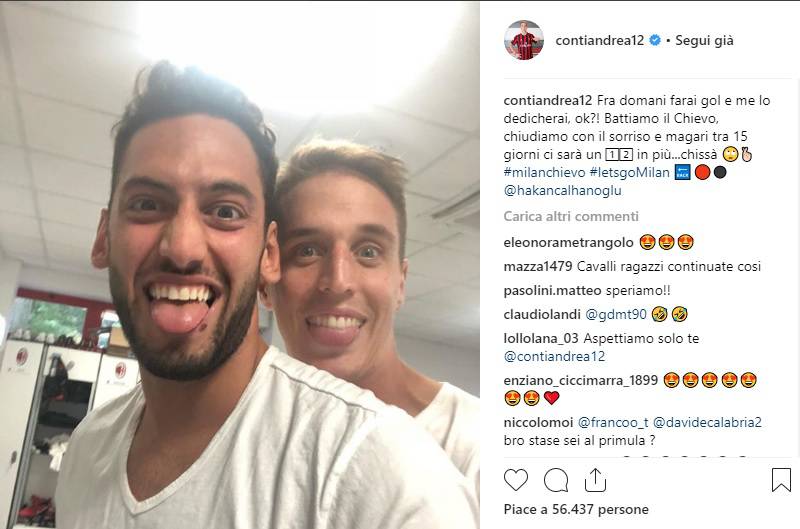 Fermo praticamente da più di un anno, nell’ultima settimana è tornato a fare blocchi di lavoro insieme al gruppo. Ciò significa che il rientro è molto vicino, probabilmente ci sarà un’occasione per lui già dopo la sosta. Una piccola anticipazione l’ha data lo stesso Conti sul suo profilo Instagram. In una foto pubblicata in compagnia di Hakan Calhanoglu, l’ex Atalanta ha scritto il seguente messaggio: “Domani farai gol e me lo dedicherai, ok? Battiamo il Chievo, chiudiamo con il sorriso e magari tra 15 giorni ci sarà un 12 in più…“.