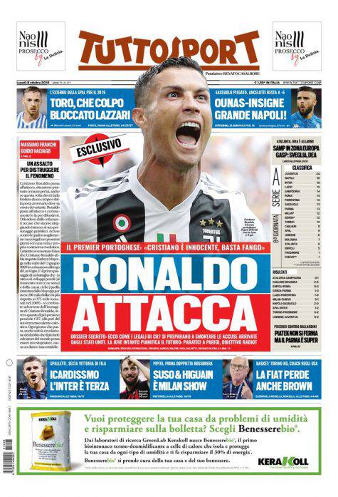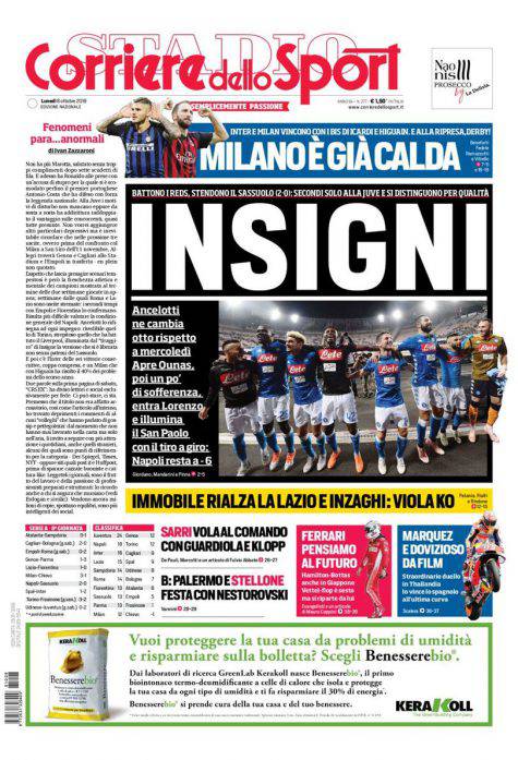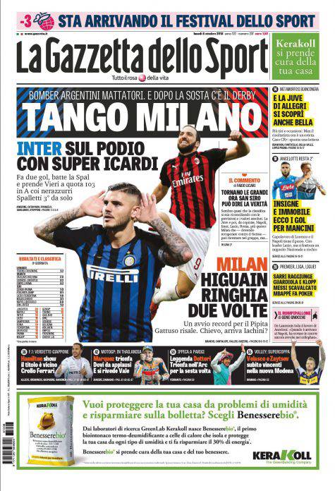 Gazzetta dello Sport, CorSport, Tuttosport: prime pagine dell’8 ottobre 2018 08/10/2018 - 07:57 di Pasquale Cacciola