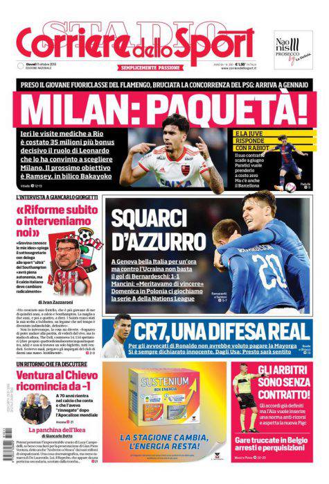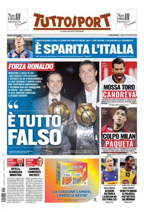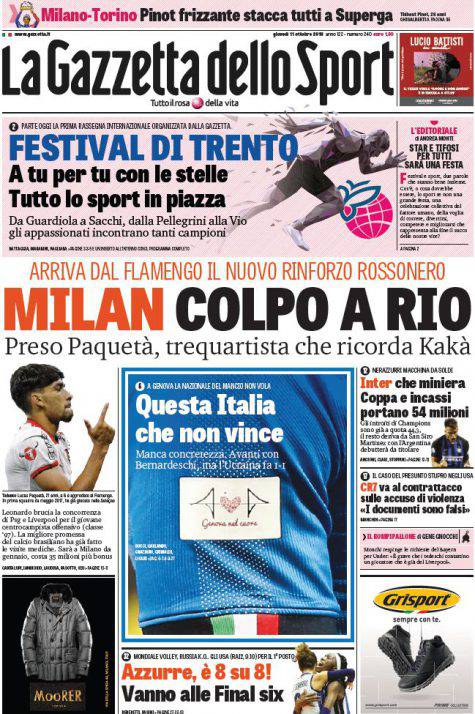 Gazzetta dello Sport, CorSport, Tuttosport: prime pagine dell’11 ottobre 2018 11/10/2018 - 12:0411/10/2018 - 07:24 di Pasquale Cacciola