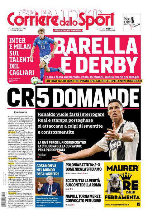 Gazzetta dello Sport, CorSport, Tuttosport: prime pagine del 12 ottobre 2018 02/12/2025 - 17:1512/10/2018 - 07:00 di Pasquale Cacciola