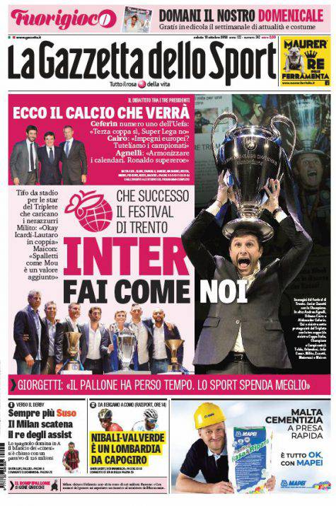 Gazzetta dello Sport, CorSport, Tuttosport: prime pagine del 13 ottobre 2018 13/10/2018 - 08:5113/10/2018 - 08:06 di Pasquale Cacciola