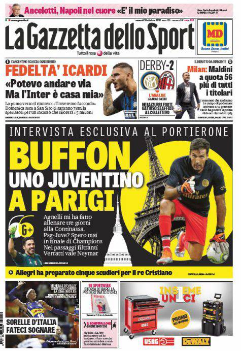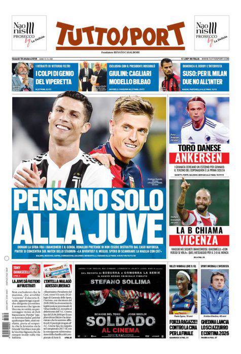 Gazzetta dello Sport, Corsport e Tuttosport: prime pagine del 19 ottobre 2018 02/12/2025 - 17:1719/10/2018 - 06:00 di Pasquale Cacciola