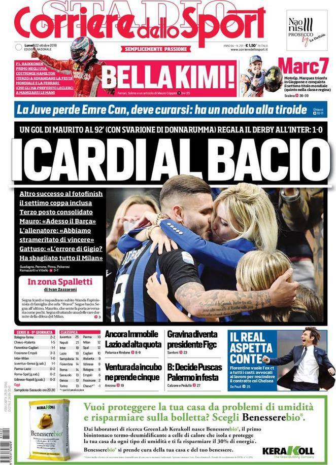 Gazzetta dello Sport, Corsport, Tuttosport: prime pagine del 22 ottobre 2018 22/10/2018 - 08:13 di Pasquale La Ragione