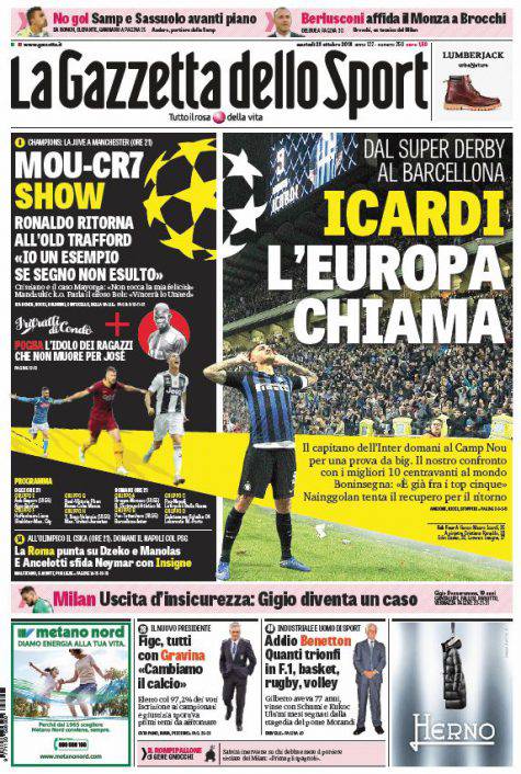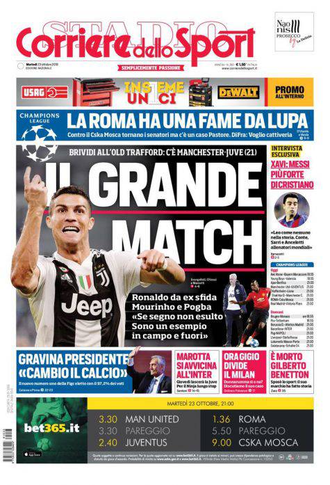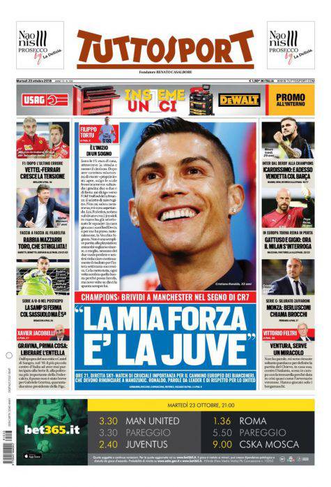 Gazzetta dello Sport, Corsport, Tuttosport: prime pagine del 23 ottobre 2018 23/10/2018 - 07:56 di Pasquale Cacciola