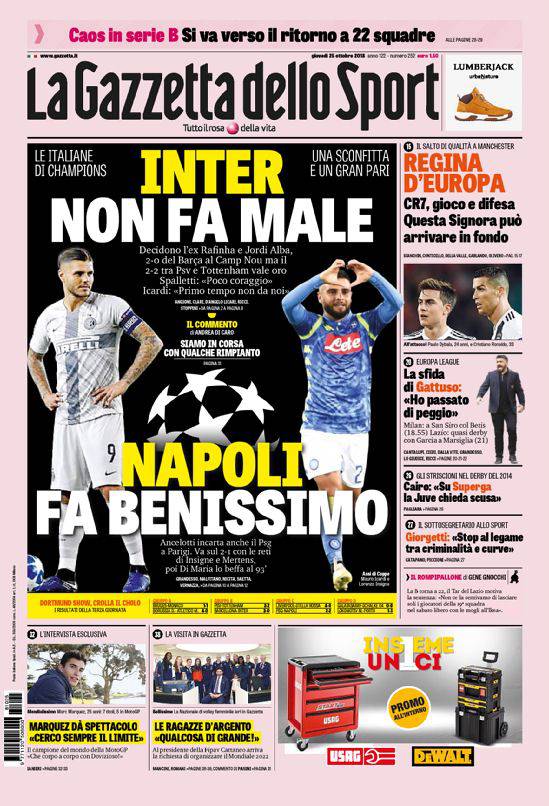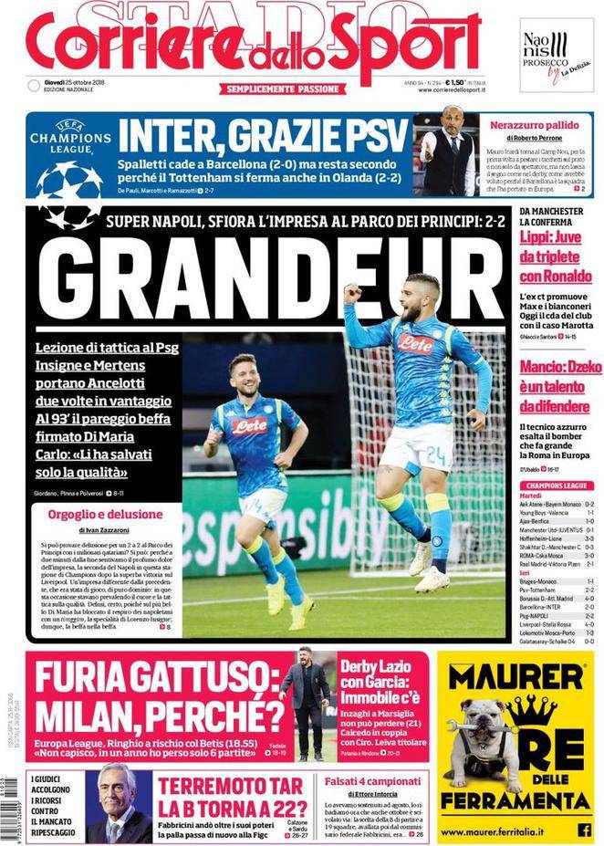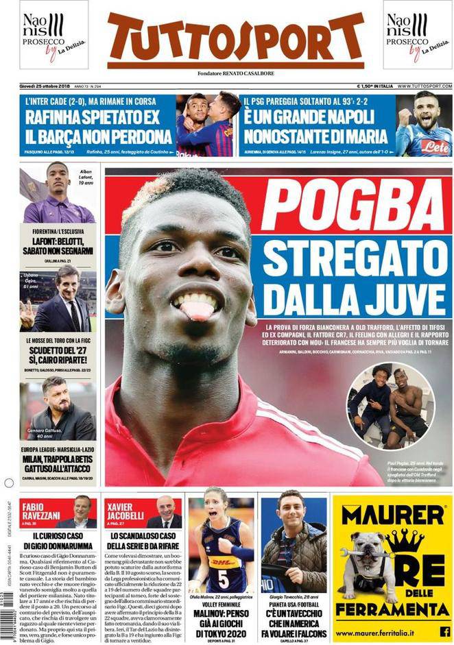 Gazzetta, Corriere dello Sport, Tuttosport: prime pagine 25 ottobre 2018 25/10/2018 - 08:07 di Matteo B.