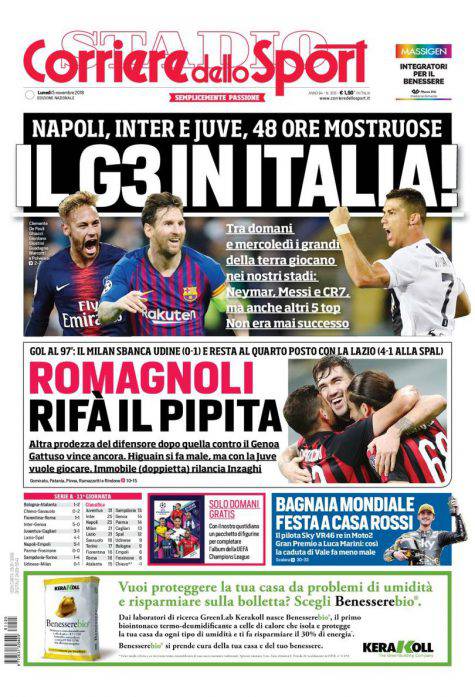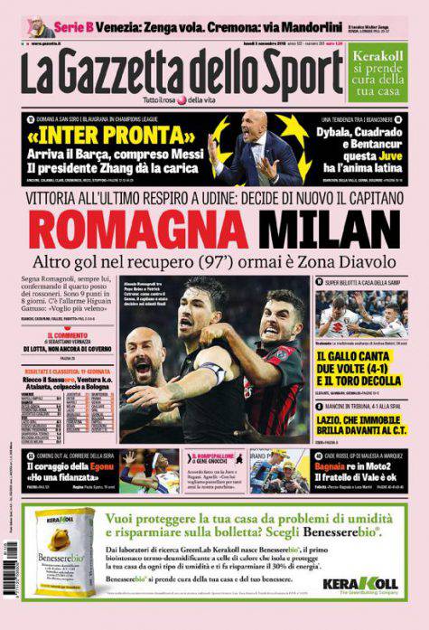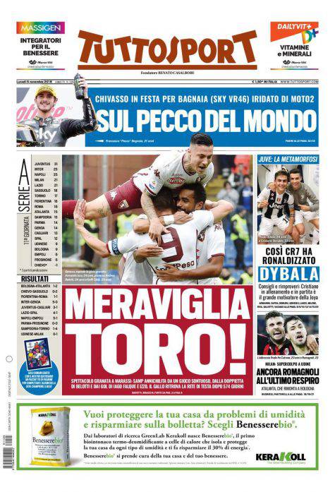 Gazzetta dello Sport, Corsport, Tuttosport: prime pagine del 5 novembre 2018 05/11/2018 - 08:5105/11/2018 - 06:40 di Pasquale Cacciola