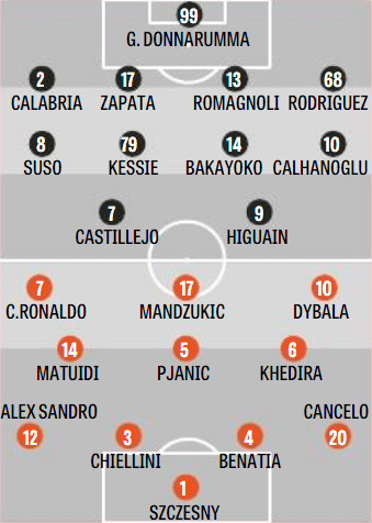 Rientrerà dall’inizio il turco Hakan Calhanoglu, schierato come esterno sinistro di centrocampo, mentre è intoccabile l’attuale diga mediana formata da Kessié e Bakayoko. Infine buone notizie da Davide Calabria che è pronto per sfidare sulla corsia destra di difesa la classe di CR7.