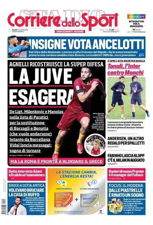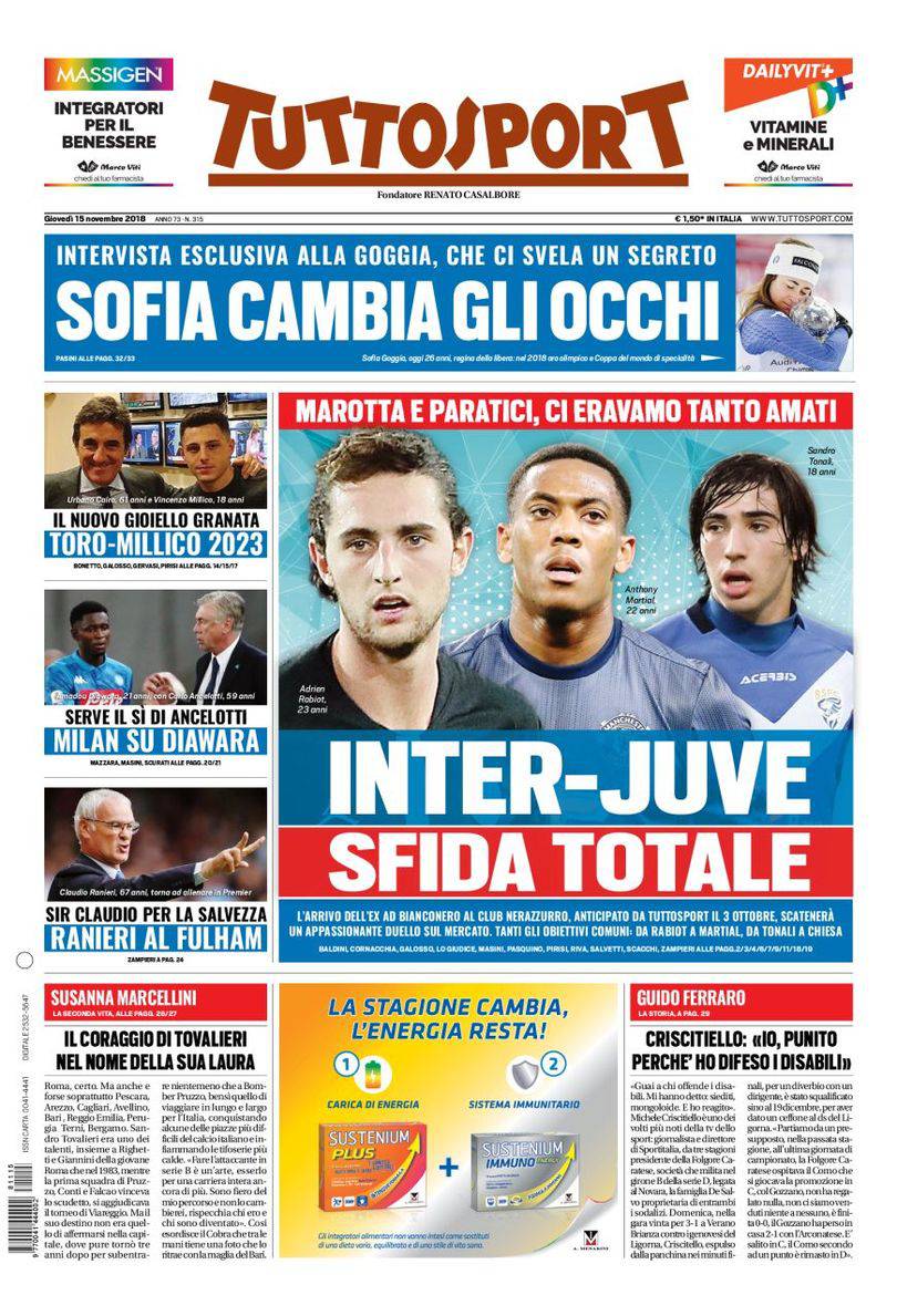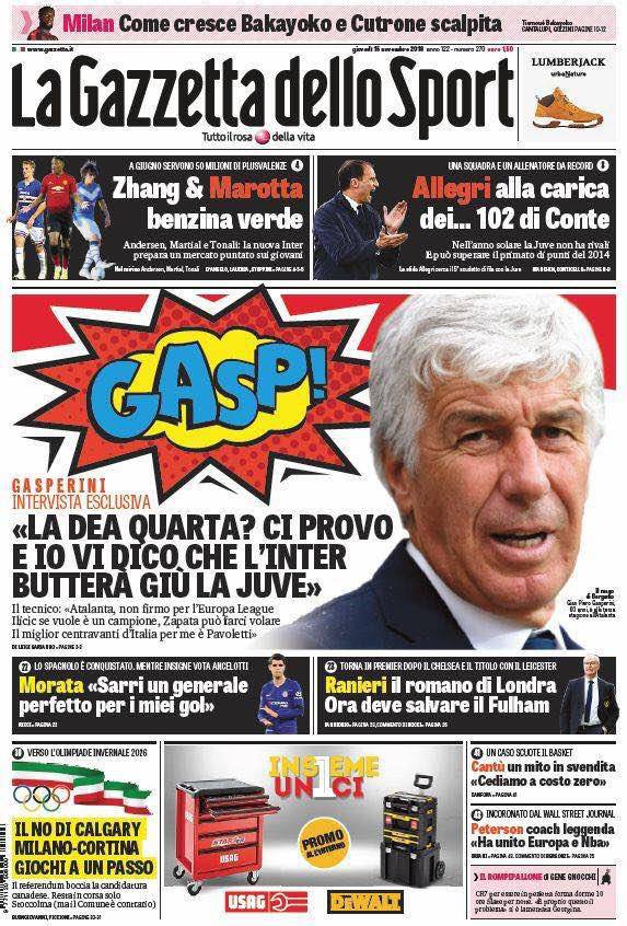 Gazzetta, Corriere dello Sport, Tuttosport: prime pagine 15 novembre 2018 15/11/2018 - 08:17 di Matteo B.