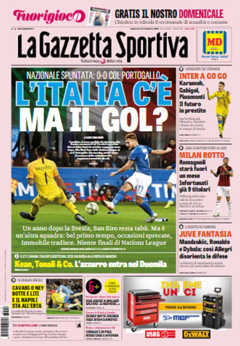 Gazzetta dello Sport, Corsport e Tuttosport: prime pagine del 18 novembre 2018 18/11/2018 - 08:13 di Keivan Karimi