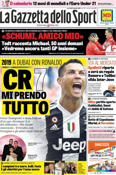 Gazzetta dello Sport, Corsport, Tuttosport: prime pagine del 2 gennaio 2019 02/01/2019 - 07:55 di Pasquale Cacciola