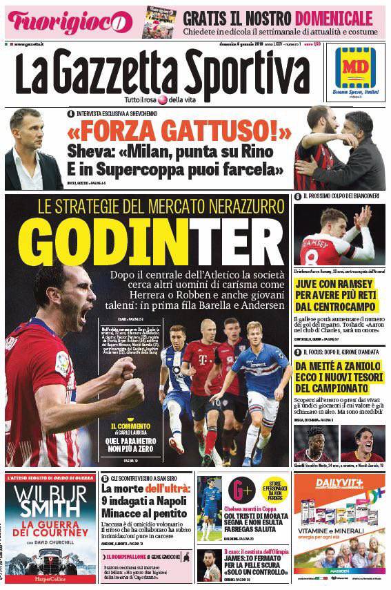 Gazzetta dello Sport, Corsport, Tuttosport: prime pagine del 6 gennaio 2019 06/01/2019 - 08:33 di Keivan Karimi