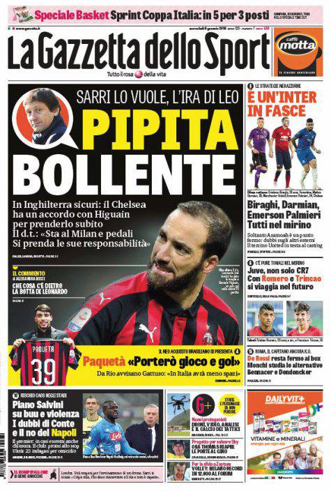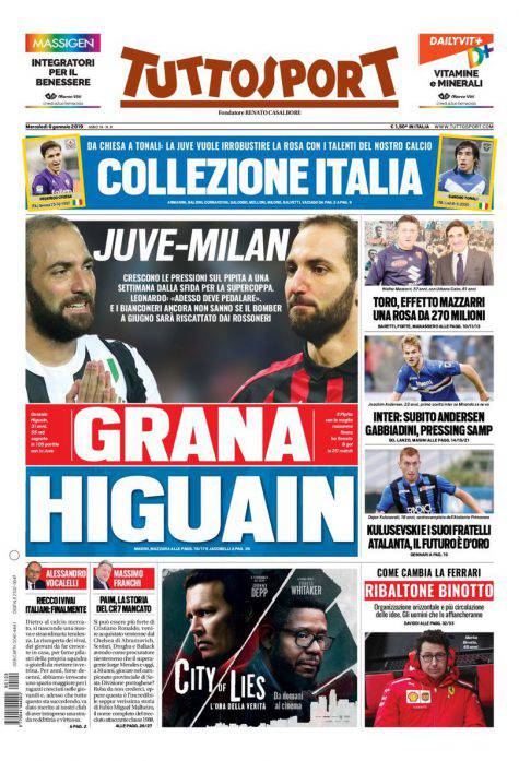 Gazzetta dello Sport, Corsport, Tuttosport: prime pagine del 9 gennaio 2019 09/01/2019 - 07:53 di Pasquale Cacciola