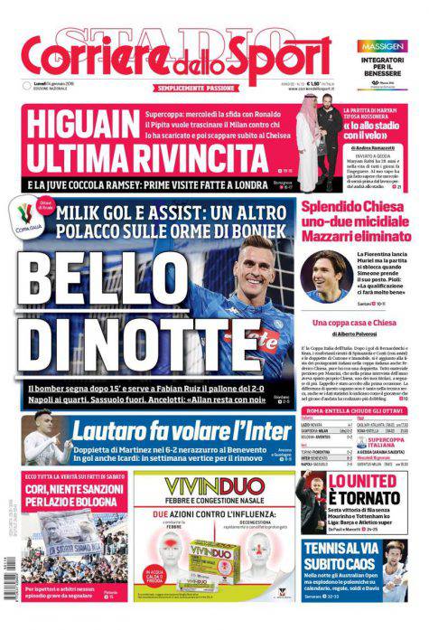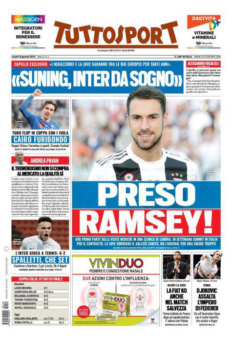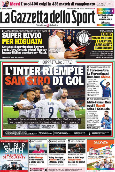 Gazzetta dello Sport, Corsport, Tuttosport: prime pagine del 14 gennaio 2019 14/01/2019 - 10:5414/01/2019 - 08:00 di Pasquale Cacciola