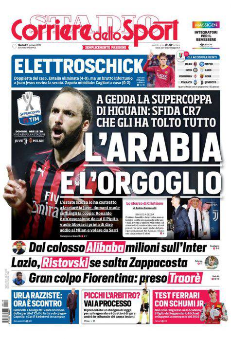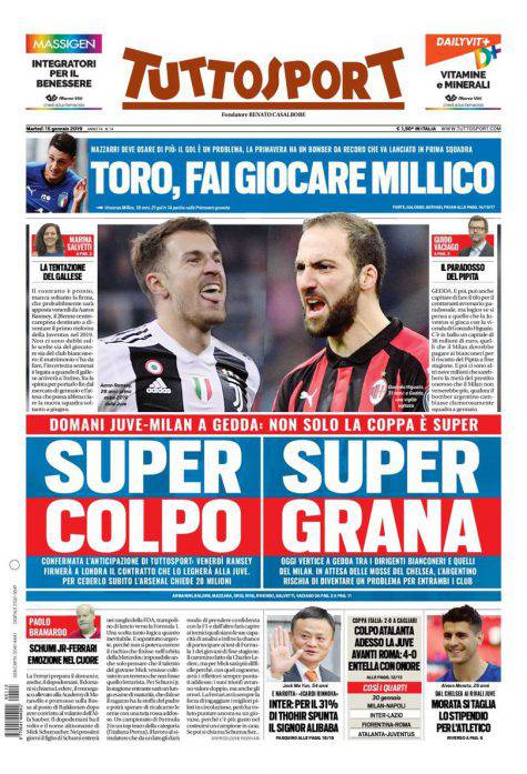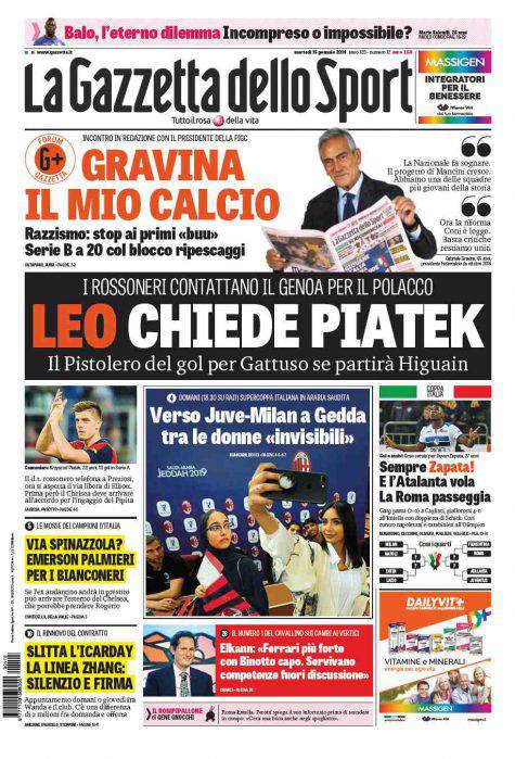 Gazzetta dello Sport, Corsport, Tuttosport: prime pagine del 15 gennaio 2019 15/01/2019 - 08:00 di Pasquale Cacciola
