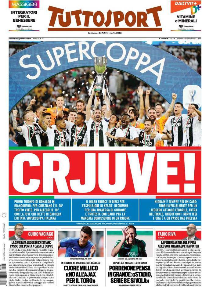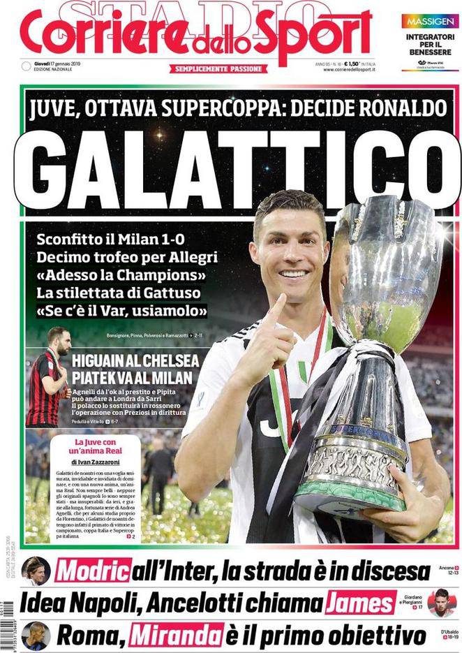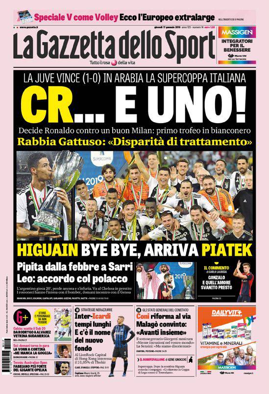 Gazzetta, Corriere dello Sport, Tuttosport: prime pagine 17 gennaio 2019 17/01/2019 - 07:58 di Matteo B.