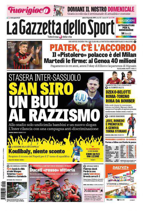 Gazzetta dello Sport, Corsport, Tuttosport: prime pagine del 19 gennaio 2019 19/01/2019 - 08:09 di Pasquale Cacciola
