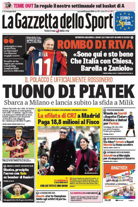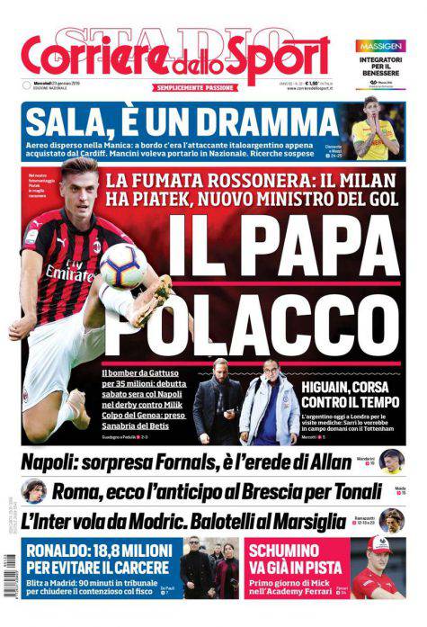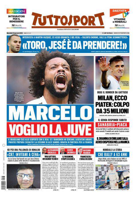 Gazzetta dello Sport, Corsport, Tuttosport: prime pagine del 23 gennaio 2019 23/01/2019 - 08:13 di Pasquale Cacciola