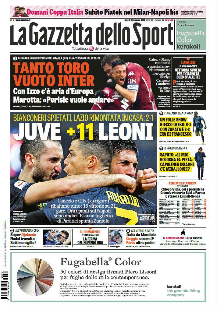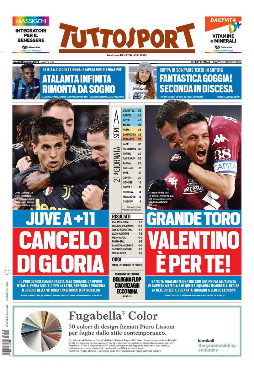 Gazzetta dello Sport, Corsport, Tuttosport: prime pagine del 28 gennaio 2019 28/01/2019 - 08:00 di Pasquale Cacciola