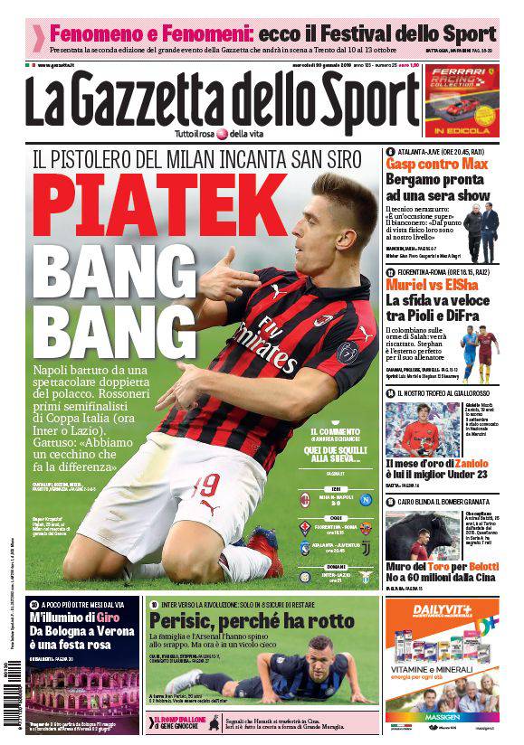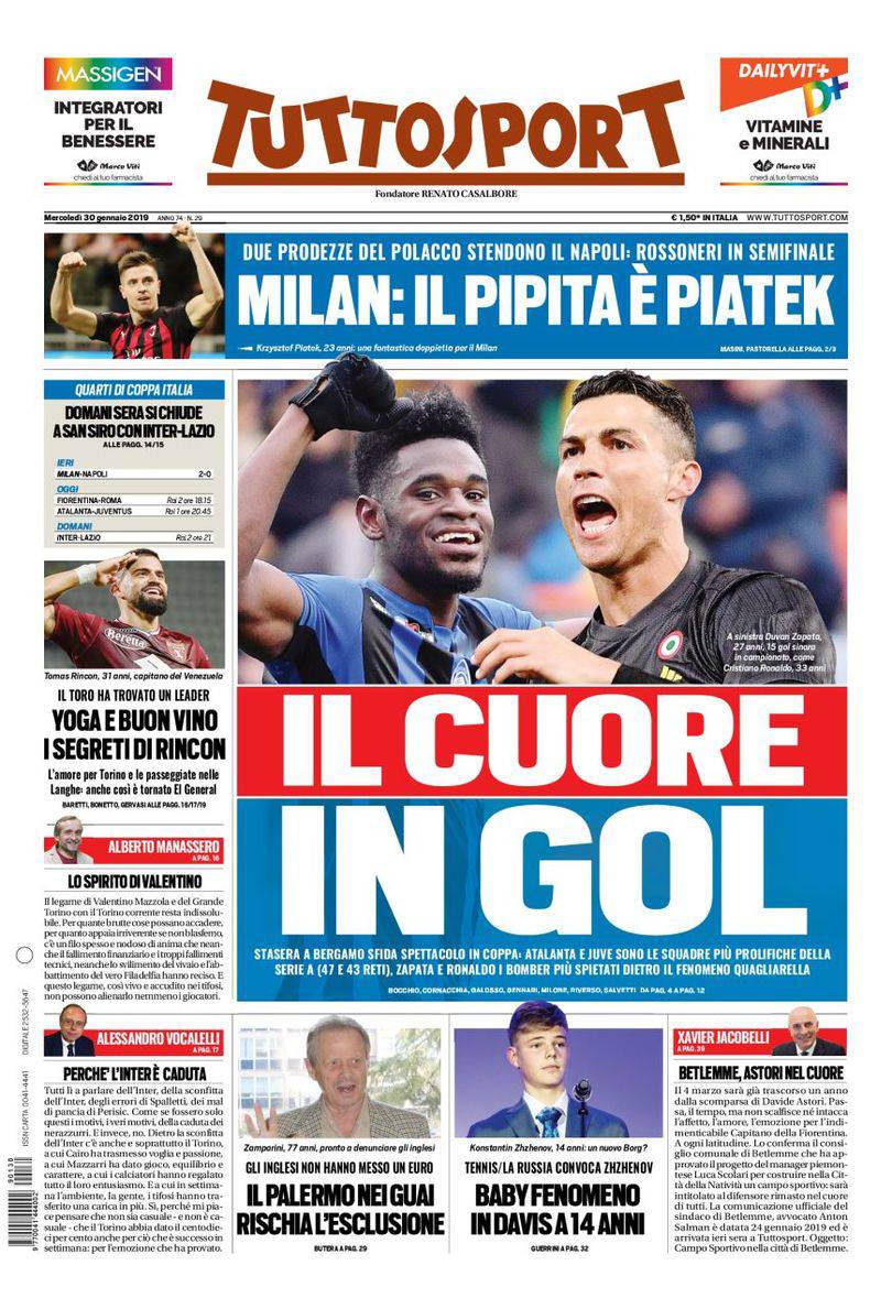 Gazzetta dello Sport, Corsport, Tuttosport: prime pagine del 30 gennaio 2019 30/01/2019 - 08:10 di Pasquale Cacciola