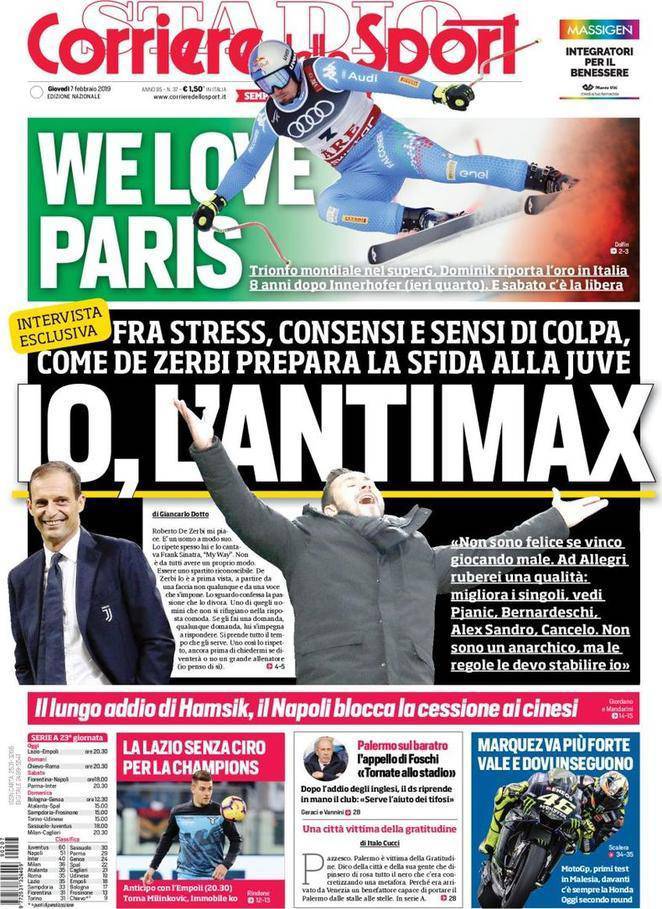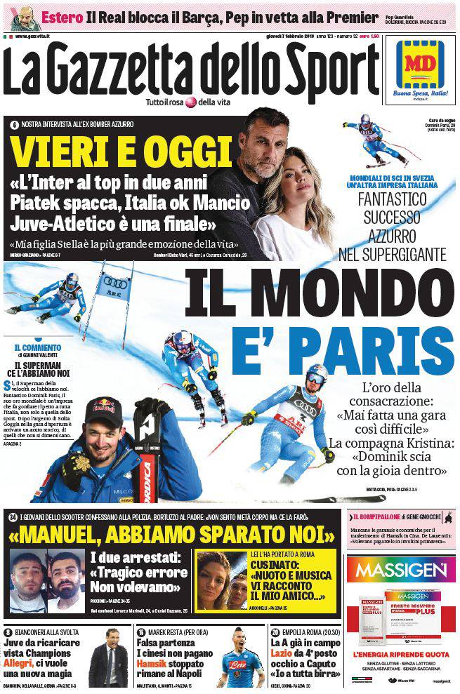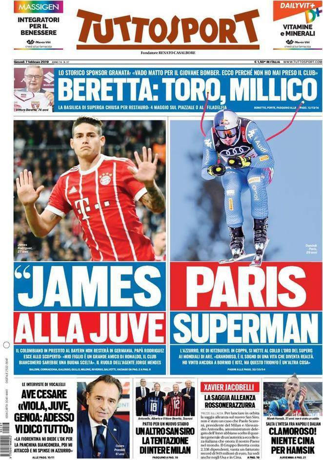 Gazzetta, Corriere dello Sport, Tuttosport: prime pagine 7 febbraio 2019 07/02/2019 - 08:10 di Matteo B.