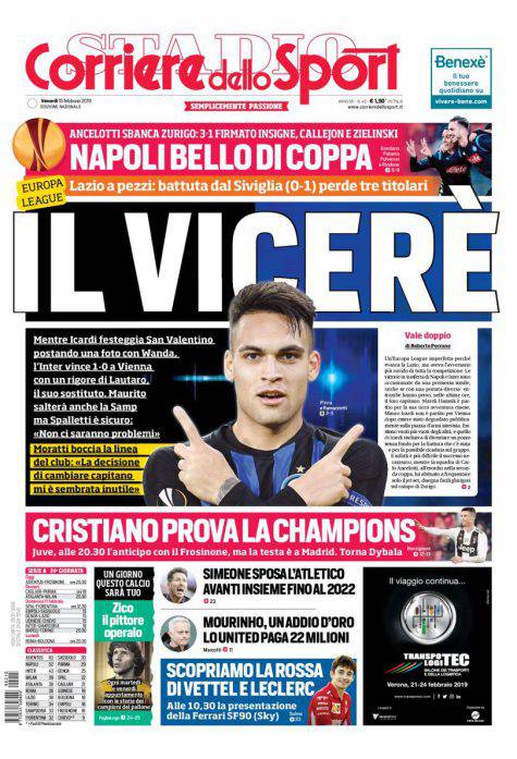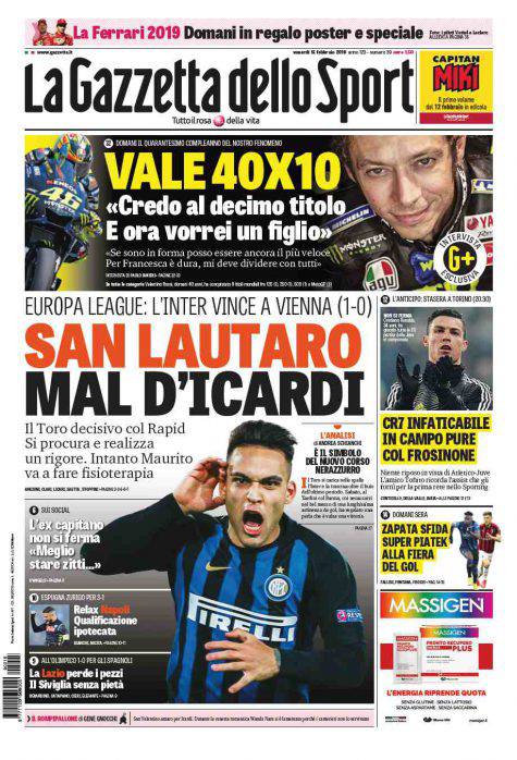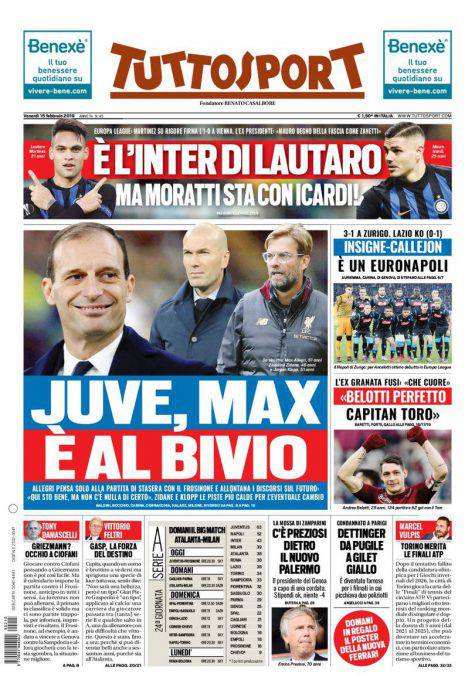 Gazzetta dello Sport, Corsport, Tuttosport: prime pagine del 15 febbraio 2019 15/02/2019 - 08:00 di Pasquale Cacciola