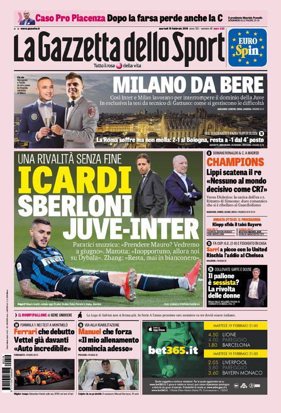 Gazzetta, Corriere dello Sport, Tuttosport: prime pagine 19 febbraio 2019 19/02/2019 - 12:3119/02/2019 - 08:29 di Matteo B.