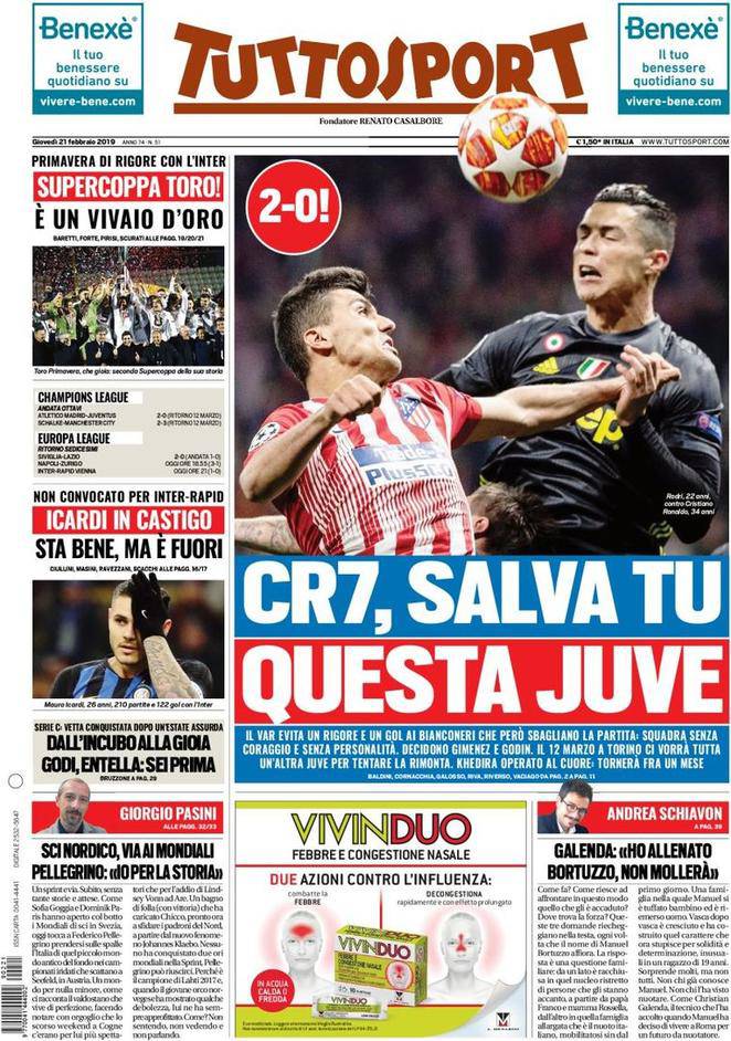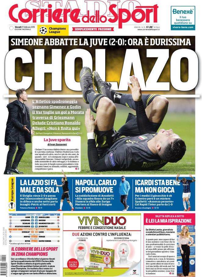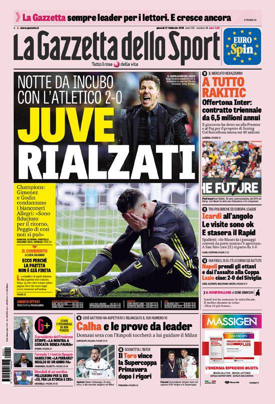 Gazzetta, Corriere dello Sport, Tuttosport: prime pagine 21 febbraio 2019 21/02/2019 - 08:33 di Matteo B.