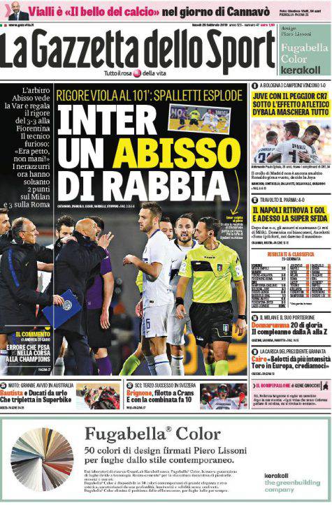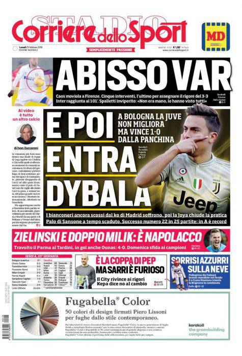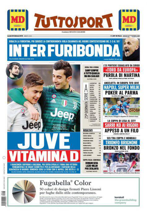 Gazzetta dello Sport, CorSport, Tuttosport: prime pagine del 25 febbraio 2019 25/02/2019 - 07:40 di Pasquale Cacciola