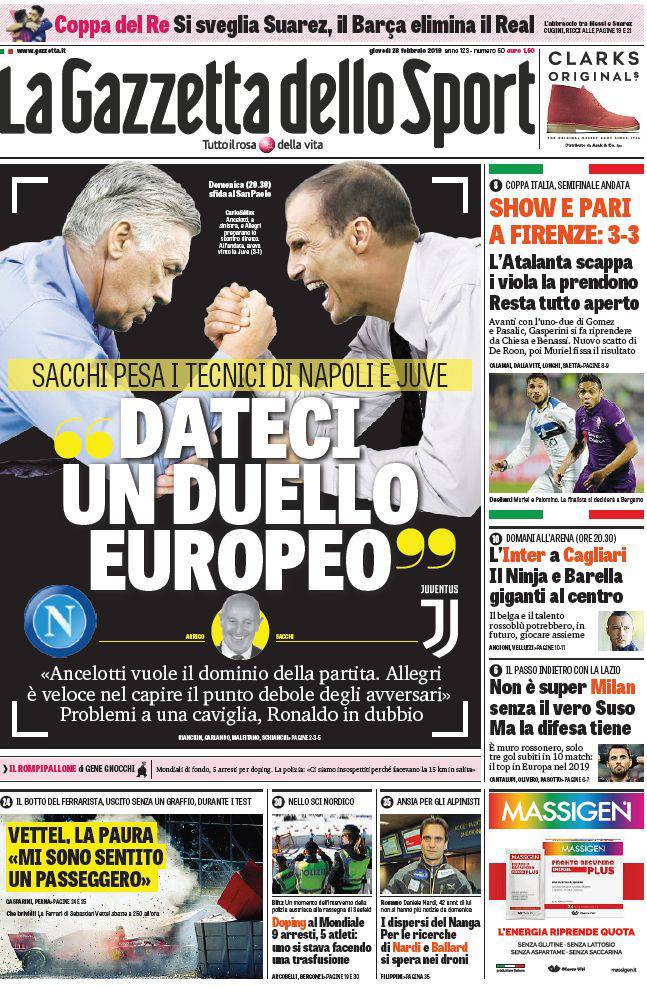 Gazzetta, Corriere dello Sport, Tuttosport: prime pagine 28 febbraio 2019 28/02/2019 - 07:49 di Matteo B.