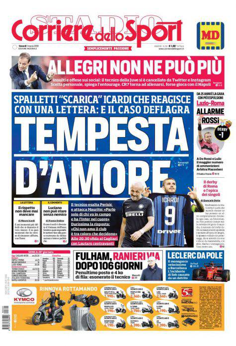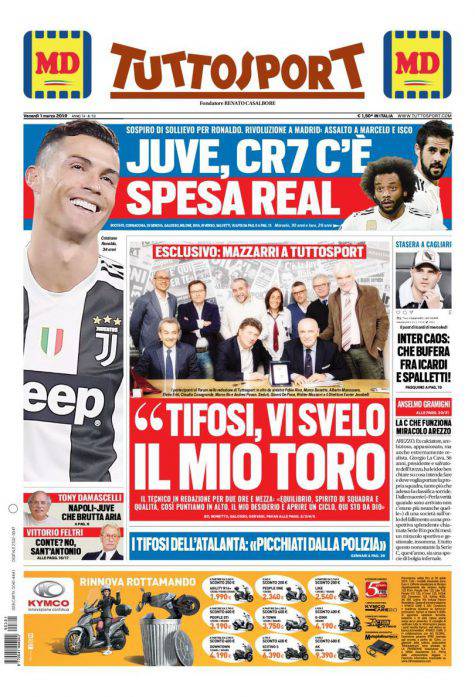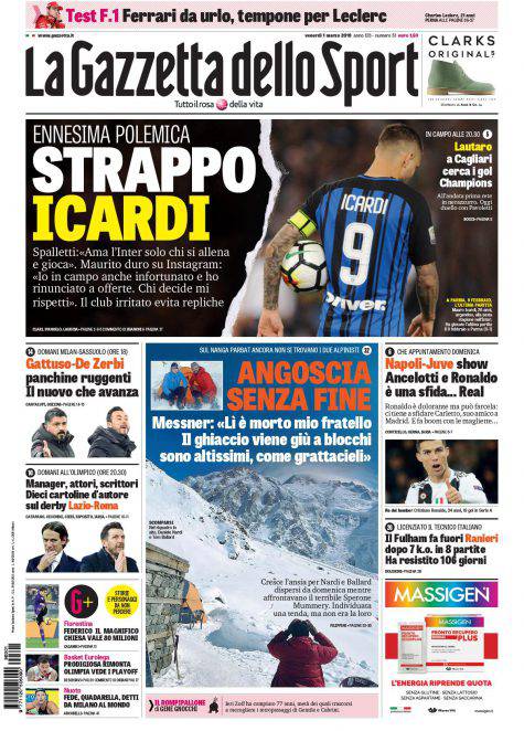 Gazzetta dello Sport, CorSport, Tuttosport: prime pagine del 1 marzo 2019 01/03/2019 - 07:50 di Pasquale Cacciola