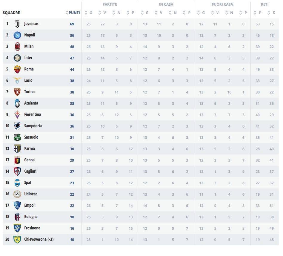 La squadra di Gattuso sale a 48 punti in classifica, scavalcando l’Inter di un punto. Rossoneri ora al terzo posto. Quel che conta però è aver aumentato, in attesa del derby Lazio-Roma di questa sera, la distanza dalle quinte in classifica. Al momento la distanza dai giallorossi (quinti in classifica) è di 4 punti, più lo scontro diretto a favore. Lazio distanziata momentaneamente dieci punti addirittura, ma i biancocelesti hanno due partite in meno.