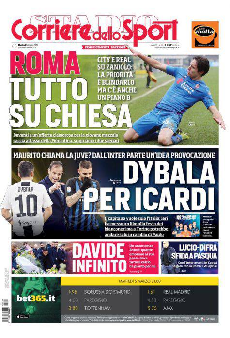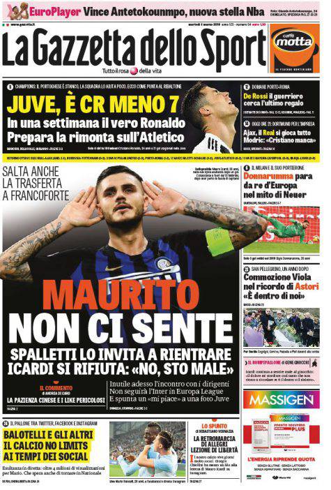Gazzetta dello Sport, CorSport, Tuttosport: prime pagine del 5 marzo 2019 05/03/2019 - 08:04 di Pasquale Cacciola