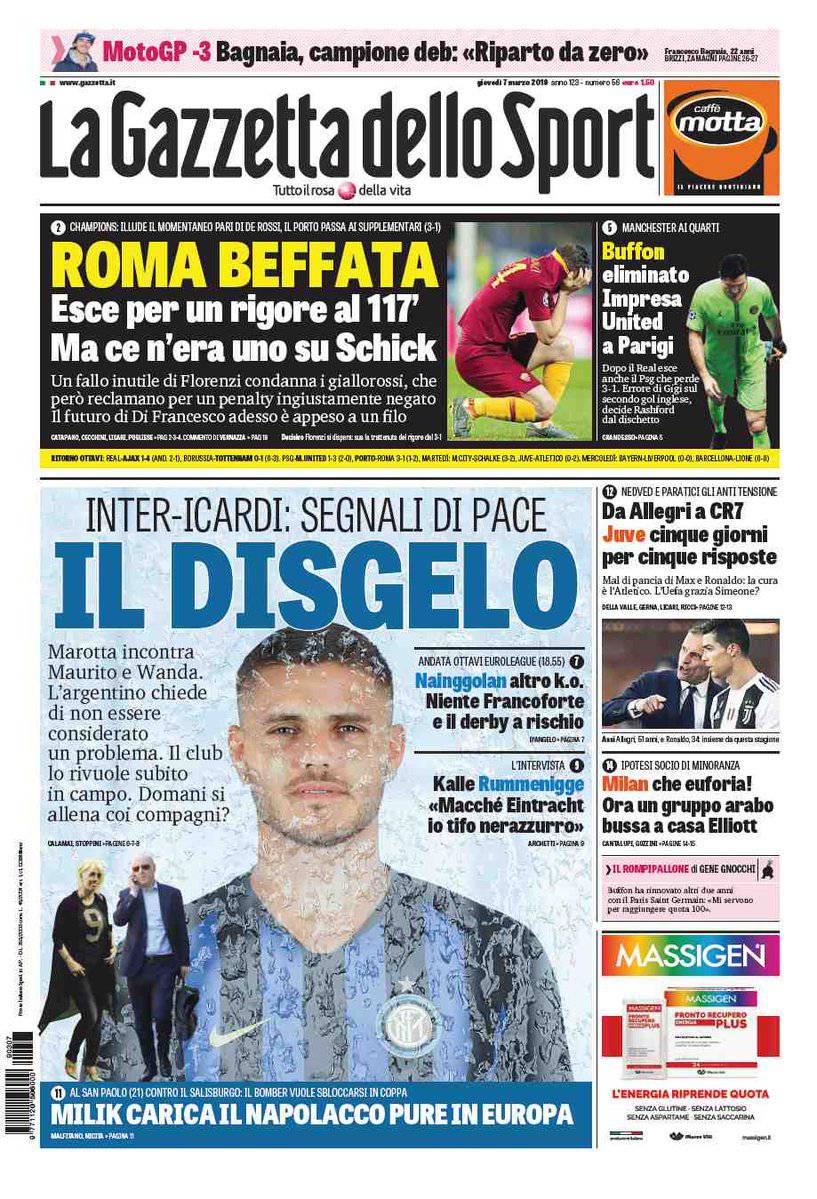 Gazzetta, Corriere dello Sport, Tuttosport: prime pagine 7 marzo 2019 07/03/2019 - 08:18 di Matteo B.
