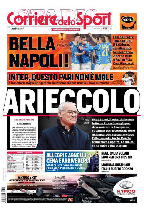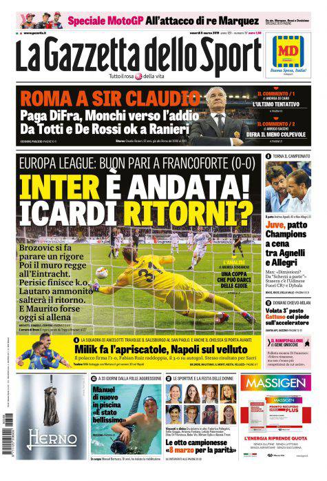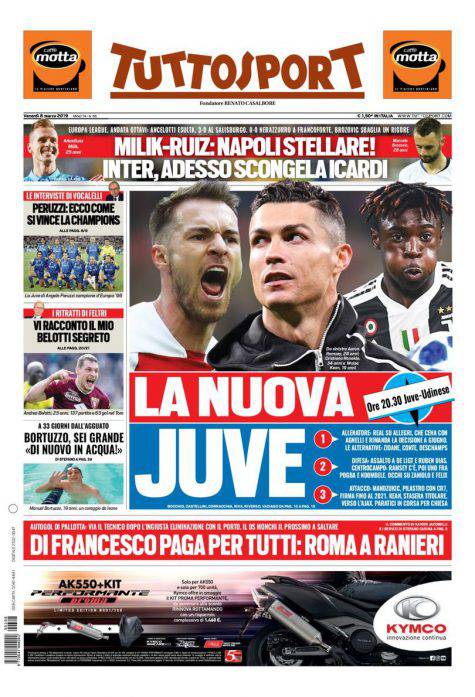 Gazzetta dello Sport, CorSport, Tuttosport: prime pagine del 8 marzo 2019 09/03/2019 - 07:5108/03/2019 - 08:00 di Pasquale Cacciola